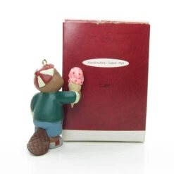 The ornament comes with its original box, but the Christmas Memory Card where you can write information about the ornament is missing. The box has marker writing on the top where it was previously given as a gift, so it’s not in giftable condition. It does include a plastic insert to protect the ornament during storage.
