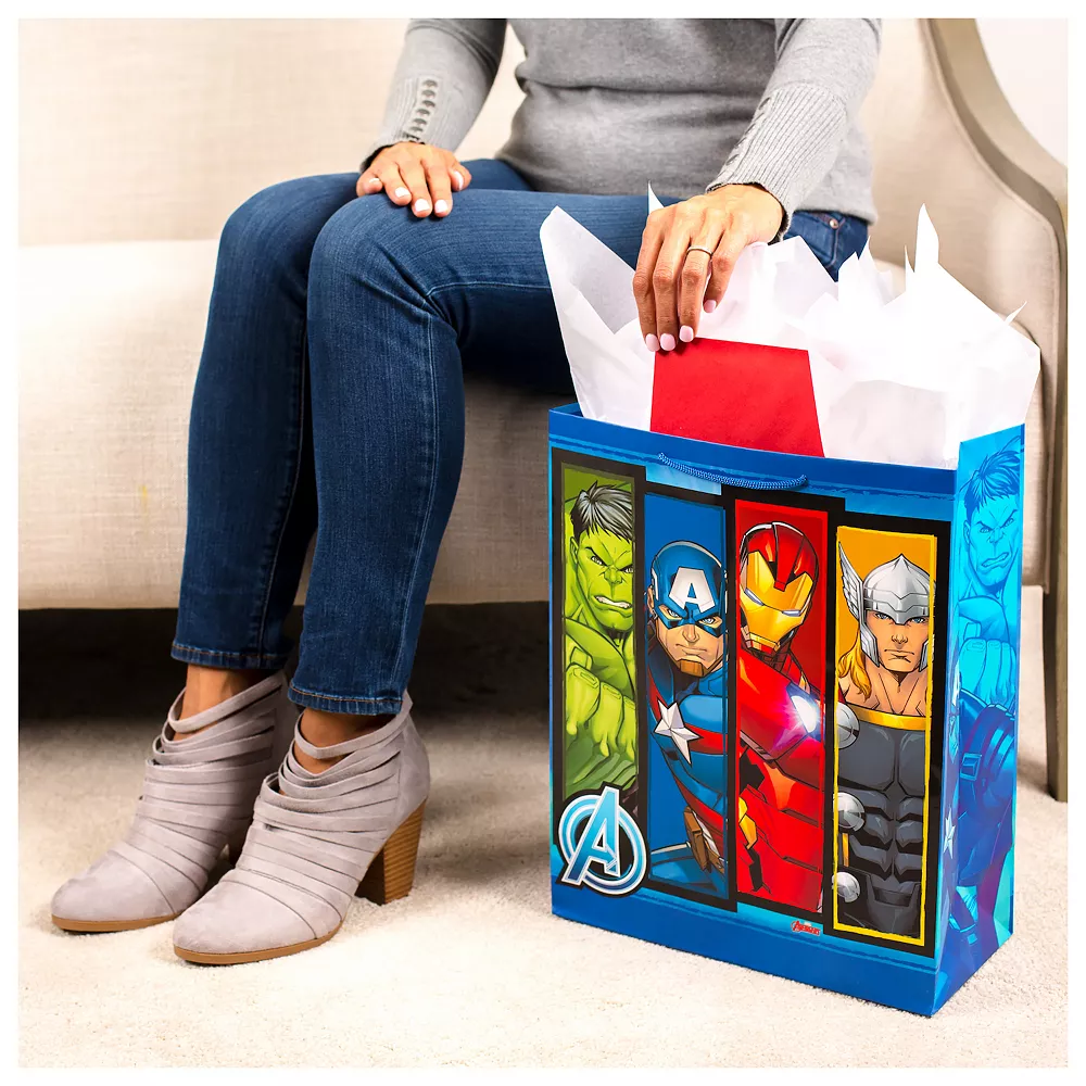Give your favorite Avengers fan a super celebration with a gift bag designed just for them. This extra large bag makes wrapping bigger gifts or a collection of small ones quick and easy.