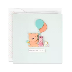 Wish family and friends well as they welcome a new addition to their family with a sweet baby shower card. This adorable card features a cheerful Winnie the Pooh design and a sweet sentiment inside that’s sure to make the new parents or parents-to-be feel extra special.