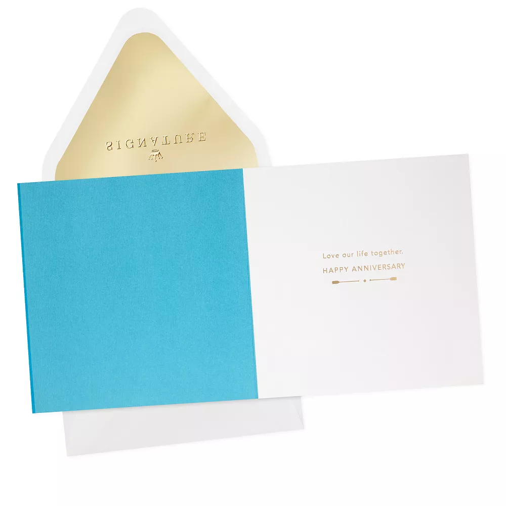 With an impressive design and simple sentiment, this Hallmark Signature anniversary card is the perfect way to celebrate another year together.