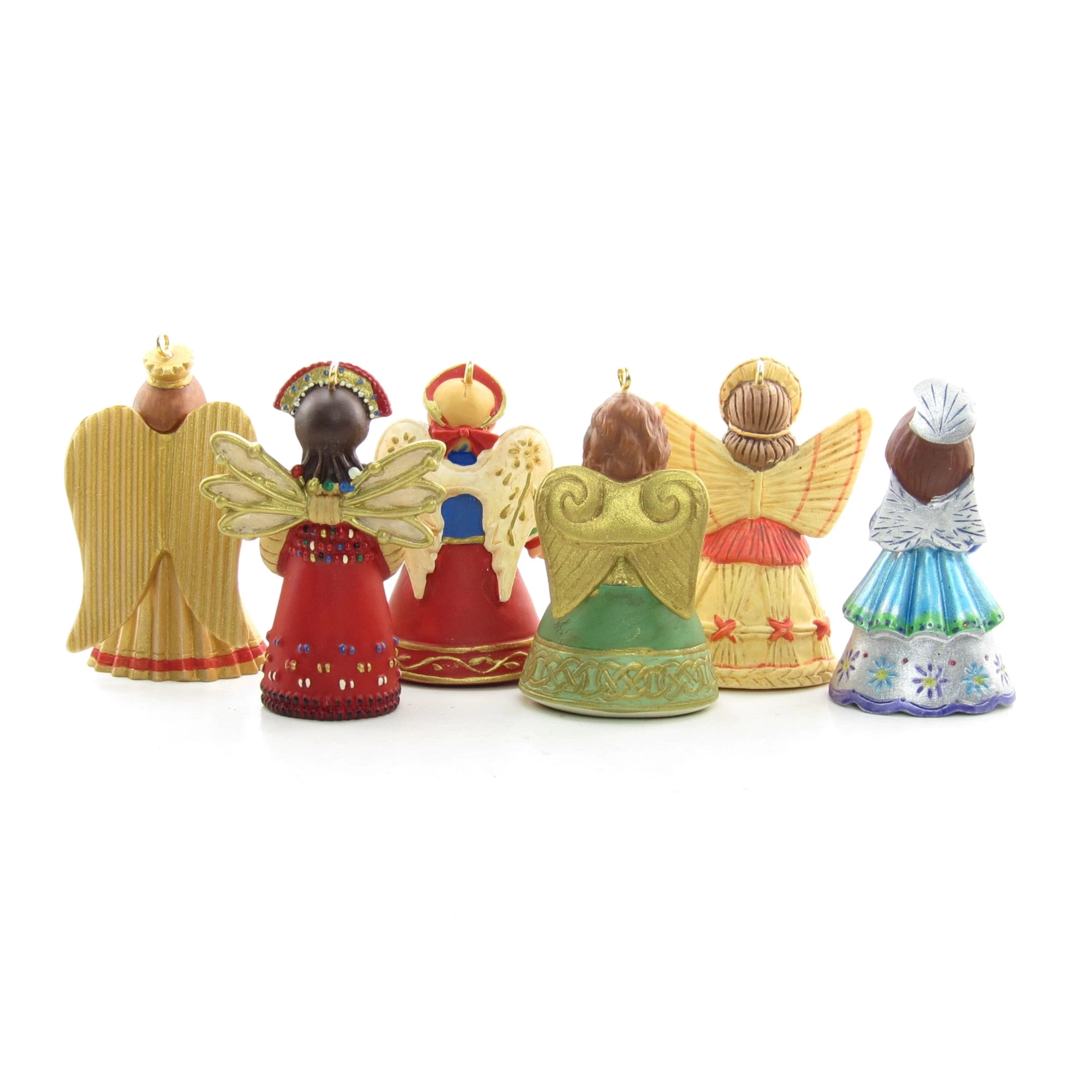 This set of miniature Hallmark Keepsake Ornaments is the Joy to the World Angels from 2007. The set includes six tiny but detailed ornaments and each angel wears a traditional-style robe representing a different country. The countries represented are (from left to right) Germany, Africa, Russia, Ireland, Sweden and Mexico.