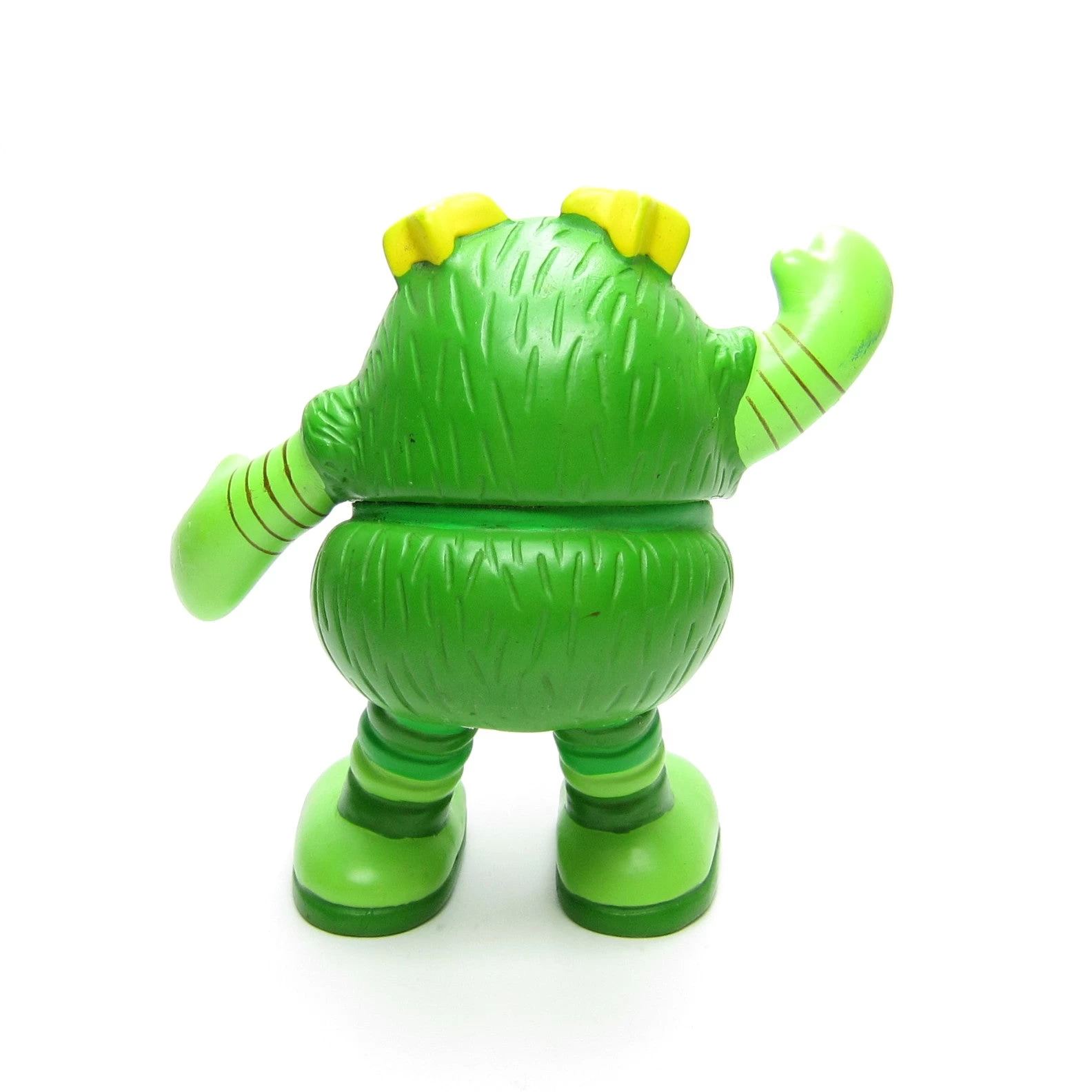 This vintage Rainbow Brite toy is Lucky Sprite, he’s green and is made of rubbery plastic material. Lucky Sprite was Patty O’Green’s sprite.