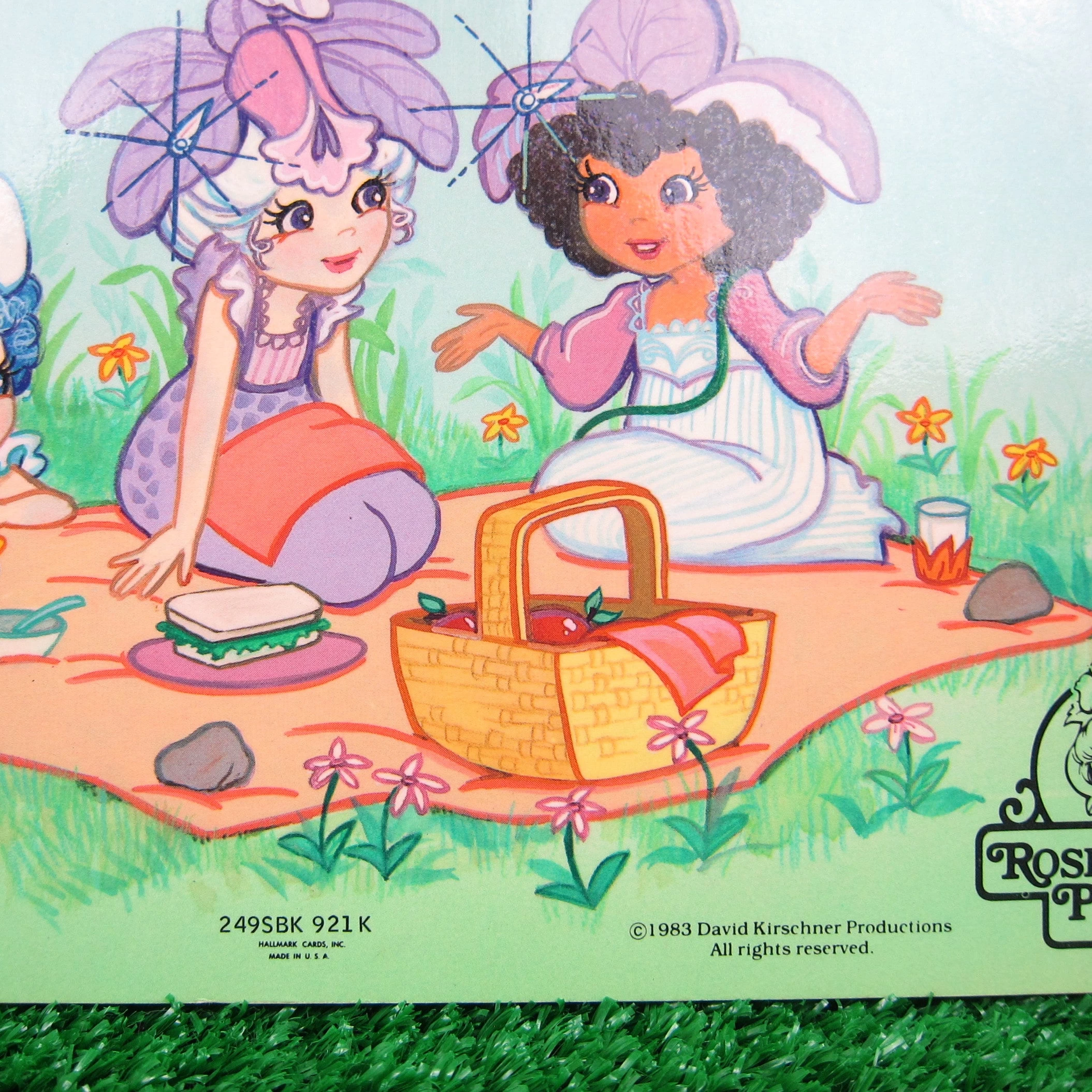 The back shows Lily Fair, Orchid and Iris having a picnic and is marked “Hallmark Cards, Inc.” and “1983 David Kirschner Productions.”